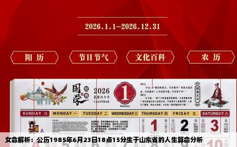 在中国传统命理学中,通过对出生日期、时辰的分析,可以解读一个人的人生轨迹和运势。以下是对一位生于山东省的女性的算命分析。基本命理信息该女士出生于公历1985年6月23日18点15分,属牛,五行纳音为沙中金命。出生地山东省,时柱为酉时。五行分析根据八字推算,该女士的五行以金为主,火土次之,水木稍弱。金...